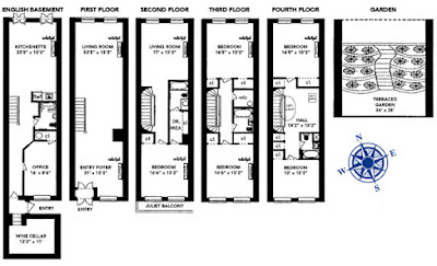 Listing information shows the 5-story red-brick residence retains many original architectural details, and includes five bedrooms, four bathrooms, more than a dozen closets, eight fireplaces with ornate mantelpieces, a cast-iron Juliet balcony that stretches across the front of the piano nobile, and an English basement that lets out to a terraced garden.